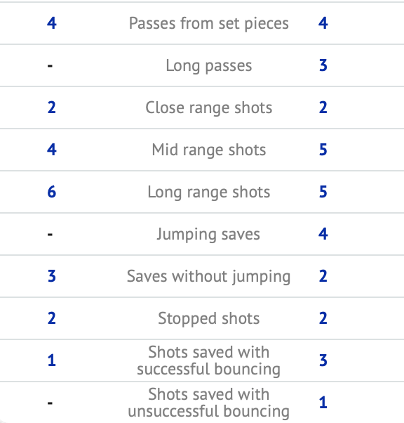 Prezentoval sa dobrou prácou nohou, kde počas celého zápasu mal 29 prihrávok s 93% úspešnosťou (27/29).
