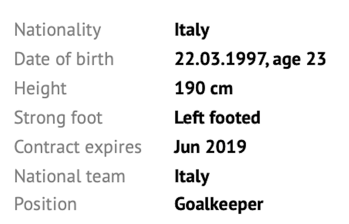 Mladý taliansky brankár vo veku 23 rokov, ktorý počas celého zápasu pôsobil veľmi pokojne a isto.